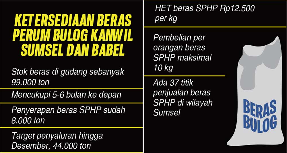 Mersi menambahkan, penyaluran SPHP hingga Desember 2025 ditarget sebanyak 44.000 ton. Sementara, stok di Gudang Bulog Sumsel dan Babel, ada 99.000 ton. Penyaluran tetap dilakukan setiap hari, di samping ada langkah penyerapan dari petani pada beberapa daerah yang masih terus berjalan, pungkasnya.
