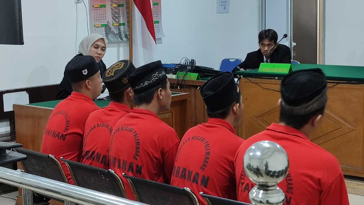Palembang kelas IA Khusus yang diketuai Samuel Ginting SH MH, Senin (22/9). Kelima tedakwa itu masing-masing Arianto, Angga Agustin, Tegu, Debi Pratama, dan Muhammad Al Parizi.-Istimewa-