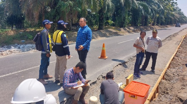 OKU EKSPRES.COM - Anggota DPRD OKU Timur, Edi Kurniansah SH, turun langsung meninjau proyek pelebaran jalan provinsi di Kecamatan Buay Madang, Kabupaten OKU Timur.