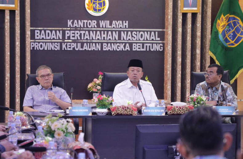 Kita orang Kementerian ATR/BPN tugasnya memastikan bahwa tanah rakyat itu aman. Karena, kita masuk kategori land tenure, yang berarti legalisasi aset. Aset itu harus dilegalisasi dan itu tugas kita, ujar Menteri Nusron di Ruang Rapat Kanwil BPN Provinsi Kepulauan Bangka Belitung.