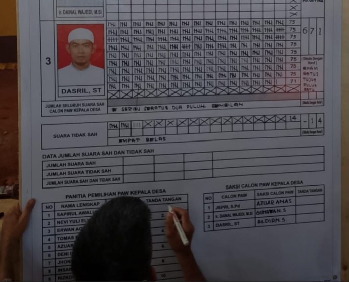 Dasril Menang Telak Pada Pilkades PAW Tanjung Kemala