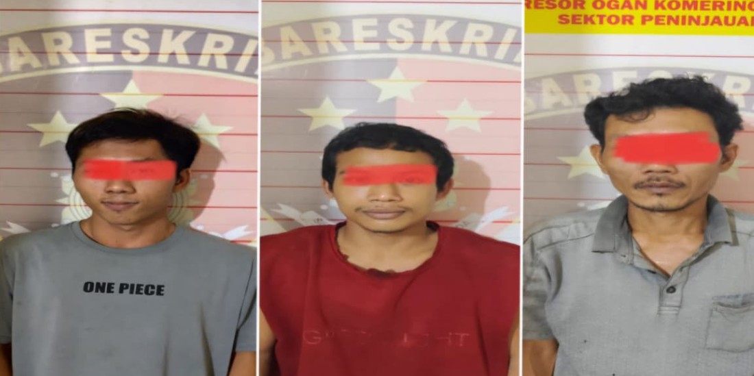 Ketiga tersangka masing-masing diketahui bernama Muslimin (39), Riswandan (25), dan Idul Saputra (25).