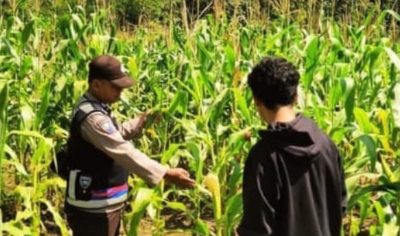 OKU EKSPRES.COM - Dalam mendukung program ketahanan pangan nasional, Bhabinkamtibmas Polsek Simpang, OKU Selatan, Brigpol Fetriyanto, melakukan pemantauan langsung ke lahan jagung milik warga di desa binaannya pada Jumat (24/10/2025).
