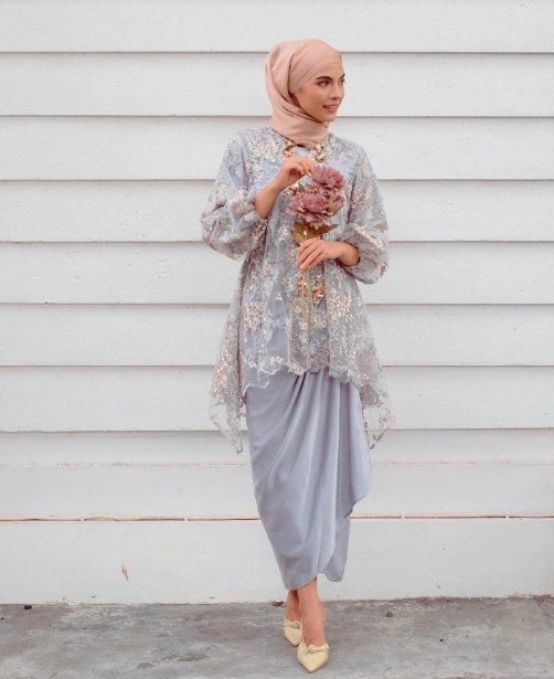 Untuk kamu yang ingin tampil feminin dan lembut, model outer tunik brokat dengan potongan lurus bisa jadi pilihan.