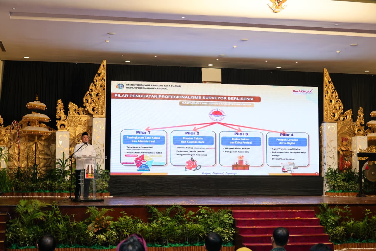 Denpasar - OKU EKSPRES.COM - Menteri Agraria dan Tata Ruang/Kepala Badan Pertanahan Nasional (ATR/BPN), Nusron Wahid, menegaskan kembali pentingnya peran strategis Masyarakat Ahli Survey Kadaster Indonesia (MASKI) dalam memperkuat manajemen administrasi pertanahan nasional.