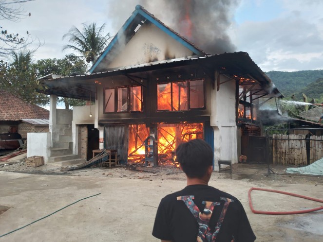 Rumah dua lantai milik seorang petani bernama Tamimi (44) ludes dilahap si jago merah beserta seluruh isinya.