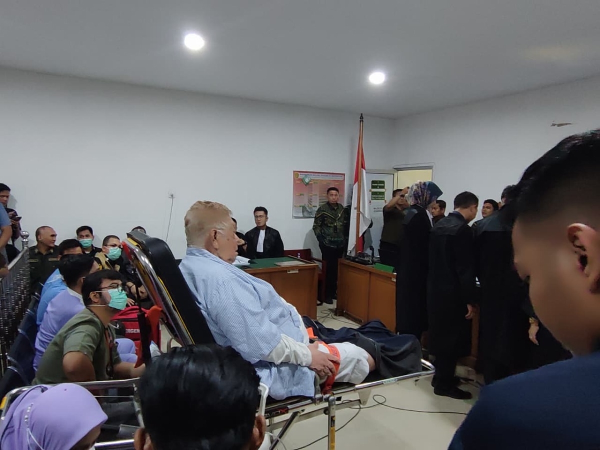 Selama persidangan, Halim berada di atas ranjang dan didampingi tim medis RSUD Siti Fatimah, lengkap dengan peralatan kesehatan termasuk tabung oksigen.